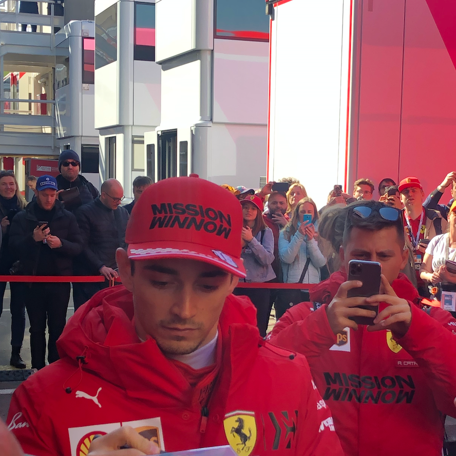 C’est aussi l’occasion de croiser les pilotes. C’est la rentrée des classes pour eux, les premiers essais de l’année. Même si les Teams on beaucoup de pression, les pilotes sont plutôt détendus. Il est très commun de croiser les pilotes qui marchent dans les paddocks. Le premier que nous apercevons cette année est Charles LECLERC. Nous sommes nombreux à vouloir un autographe. Il reste bien 20 min avec ses fans, signe tous les autographes avant de rejoindre ses ingénieurs pour débriefer de sa séance d’essais. C’est ainsi que nous croisons Esteban OCON, Pierre GASLY, Carlos SAINZ, Alex ALBON,
