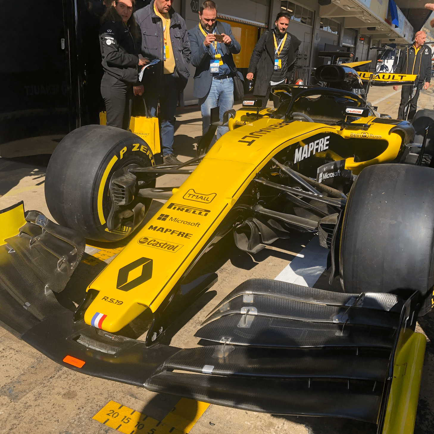 Les voitures exposées sont souvent des F1 de test, les voitures officielles sont toujours dans les box. Nous pouvons observer les mécaniciens travailler sur leurs autos dans les box comme des chirurgiens.